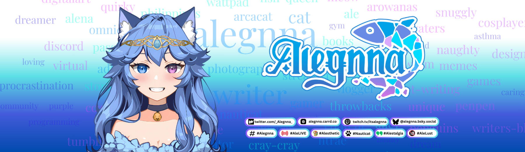 I’m Alegnna, nya can call me Alena. Ale, Alley or even fish queen - whatever's easier. meow~!I’m not your average whisker-twitching kitty; I’m a feline with splash-tastic powers, reigning over rivers, streams, and everything that goes splish-splash! 🌊🐟the purr-oud and paw-some Arcacat of Water—though here on Earth, they call me the Nauticat! 💧🐾I’m here to make friends, share the magic through writing and streaming. It’s so pawsome to meet you all, nya~! 💖✨